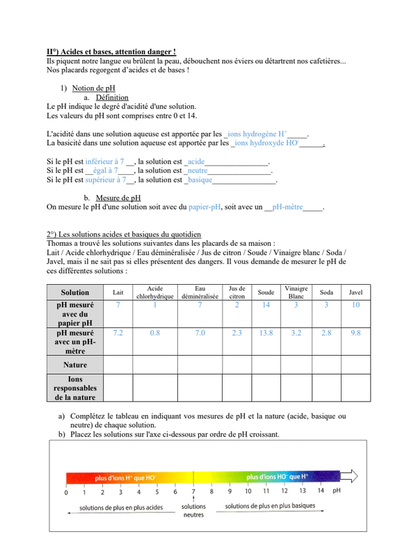 Sur la page 2, vous trouverez la correction des questions de la fiche "acides, bases, attention danger !".