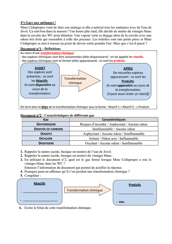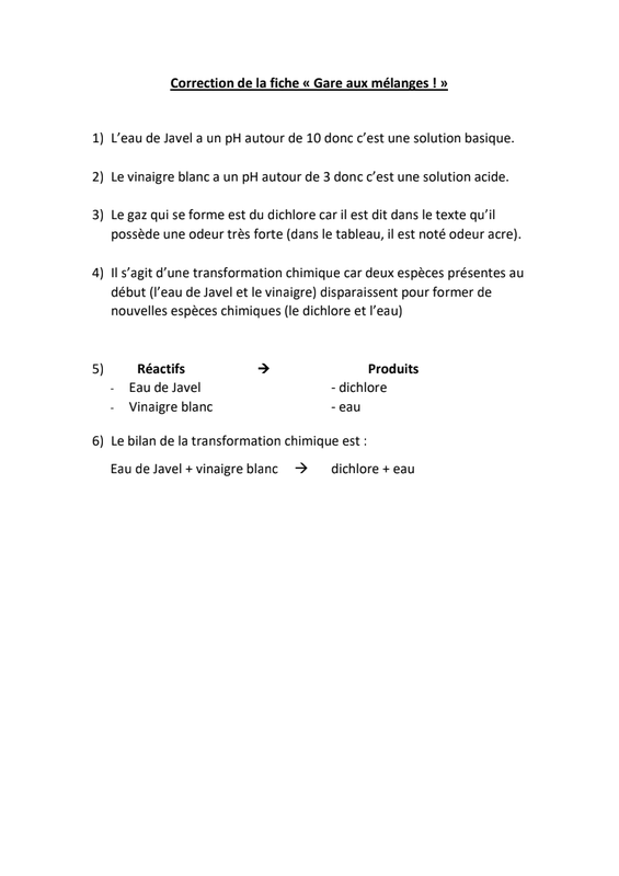 Vous trouverez en page 4 la correction de la fiche de chimie "Gare aux mélanges!"
