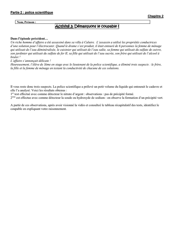Je vous dépose la correction de l'activité 3 "Démasquons le coupable". La suite du cours et du travail est sur la page 2.